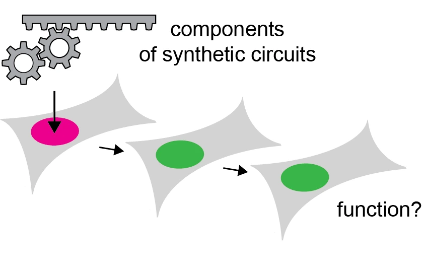 Pour comprendre comment les modifications post-translationnelles des histones sont associées aux fonctions biologiques, nous introduisons des enzymes modificatrices d’histones modulables dans des cellules vivantes et nous étudions leur comportement. Ces enzymes sont par exemple couplées à dCas9 afin qu’elles puissent être ciblées sur différents loci génomiques à l’aide de différents ARN guides. L’un de nos objectifs est de créer des circuits composés de plusieurs de ces enzymes, qui agissent ensemble pour former des modules fonctionnels complexes. Sur la base de ces circuits, nous essayons de comprendre les mécanismes qui sont à la base des phénomènes épigénétiques.