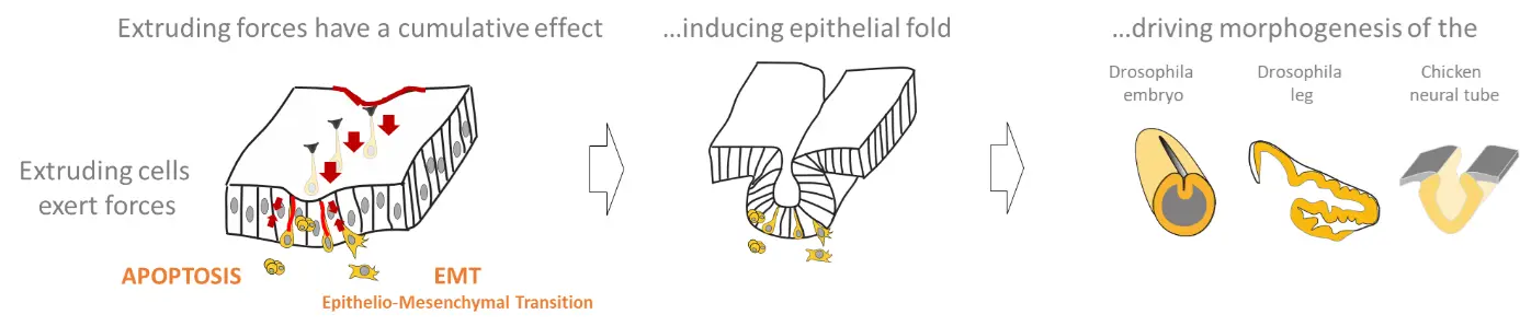 – comment l’extrusion cellulaire, y compris l’apoptose et la transition épithéliale, est pilotée mécaniquement