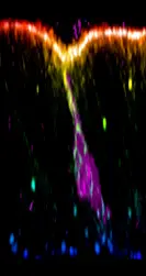 Film 3. – Mélanie Gracia – Film montrant la dynamique de l’invagination du mésoderme chez l’embryon de drosophile. Les noyaux sont codés par couleur selon la profondeur.